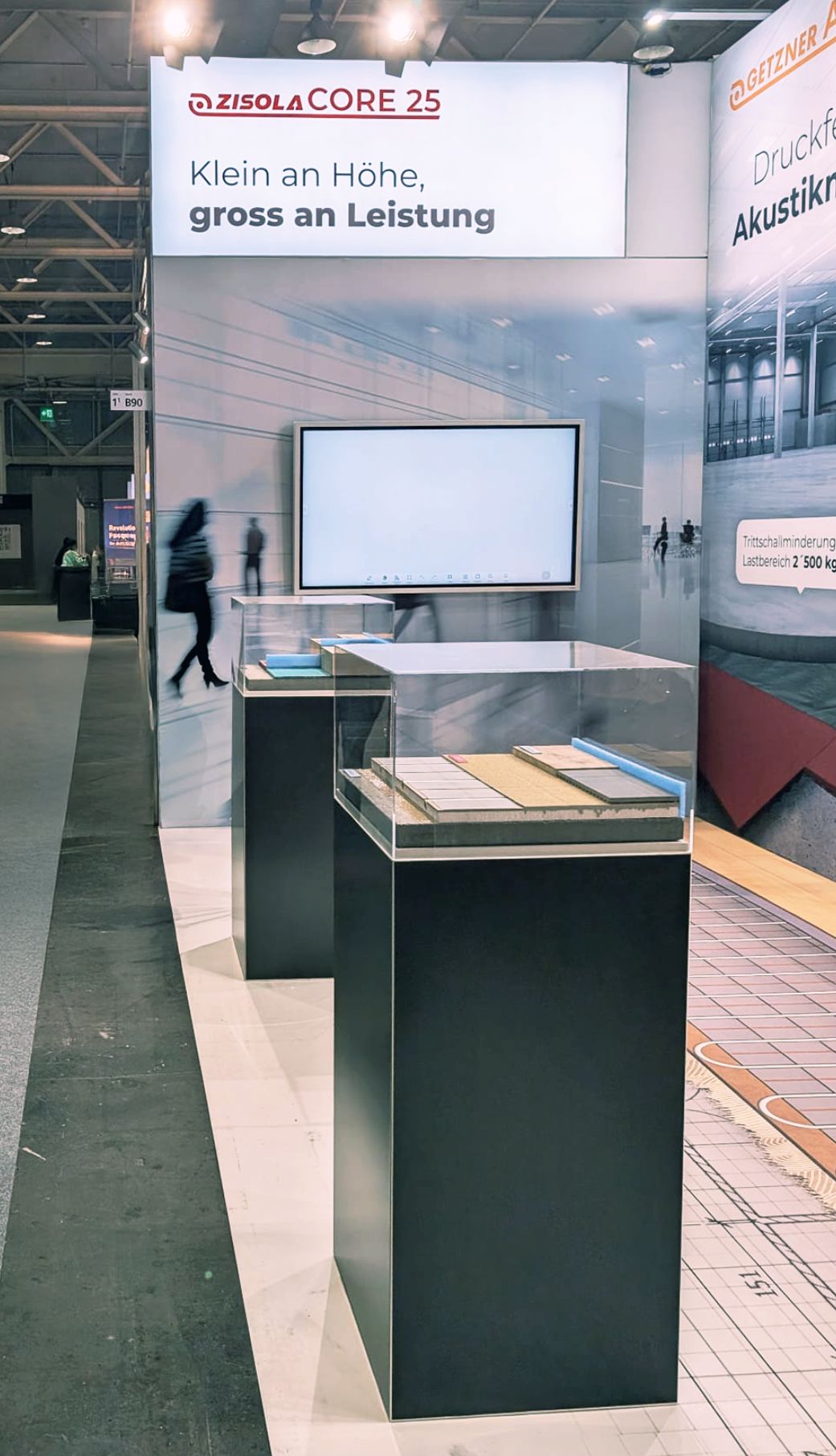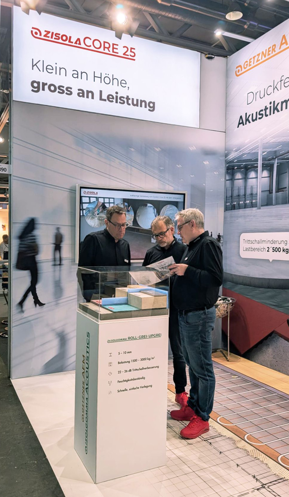Im Fokus stand insbesondere unser Niederbausystem Core 25, das sich durch eine minimale Aufbauhöhe von nur 25 mm auszeichnet und sich dadurch hervorragend für Sanierungen eignet.