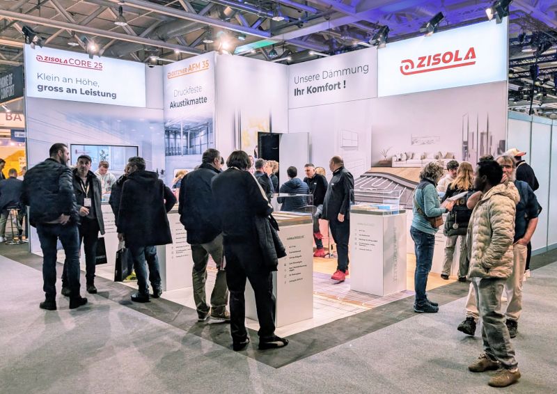 Die Swissbau 2026 bot Zisola eine ideale Plattform für den fachlichen Austausch mit Planern, Architekten, Fachpartnern sowie interessierten Eigenheimbesitzern. An unserem Messestand präsentierten wir praxisnahe Lösungen rund um Trittschalldämmung, Niederbausysteme mit geringer Aufbauhöhe sowie Schallschutz im Holz- und Leichtbau.