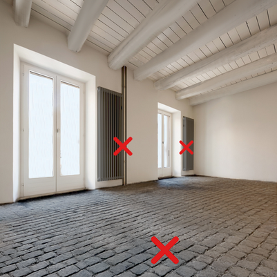 Eine nachträglich eingebaute Bodenheizung ist auch keine Lösung – die Raumhöhen werden massiv verkleinert, Bodenebene Fenster müssen ersetzt werden. Der Umbauaufwand ist enorm.